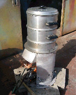 蒸し器は3段になっていて、一番下に水が入っており、この蒸気で蒸しあげる。
