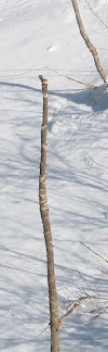 その先には、ゴロゴロ転がるうちに大きくなっていったであろう雪玉が、カタツムリのように縦巻きになって立っていて、何かの生き物に見えておもしろい。
