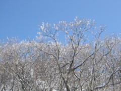 リフトを降りると、下とは景色が違って、木々も樹氷のよう。
