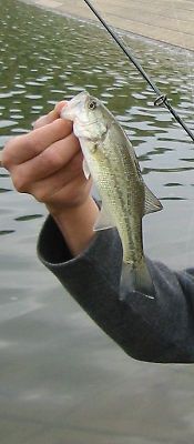 ▲2003年5月10日、暇つぶしにココで釣り上げたプチサイズの オオクチバス。 コイツ、リリースしちゃったな…。 |
