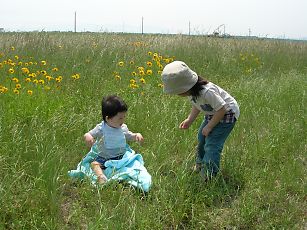 ひろーい原っぱを目の前に、走り出したくてうずうずしている様子。ふっ、子供だな…。(子供です) |