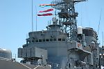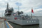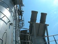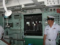 乗艦口の前にはテントがあって、自衛隊の活動や、組織のしくみなどを説明してあるパネルが展示されていた。 数年前の台風で玉島が冠水した際も、自衛隊がやってきて漂流物の撤去などをしたらしい。 その他、引っ越してきた部隊の説明とか、写真とか…。 タラップを上りきったところで、隊員サンたちが敬礼をして出迎えてくれる。 白い制服モエ〜 「足元気をつけてくださいね〜」 なんて声を掛けてもらいキンチョーしてしまった(笑) 思ったより歩き易かった。 で、思ったより狭かった。 なぜなら短魚雷発射管がでーんと置いてあるから。 まぁね、歩きやすさを追求した船じゃないものね。 前述のロシアの駆逐艦は、足元にミサイル等運搬用のレールが敷かれており、よっすぃーを抱いていた私は何度もつまづいたのだ。 これは駆逐艦と護衛艦の差なのかもしれないが。 でも塗装もキレイだ。 ロシアの駆逐艦は継ぎ接ぎだらけだった…。 62口径76ミリ速射砲 SSM装置 短SAM装置 アスロック装置 3連装短魚雷発射管 哨戒ヘリコプター 高性能20ミリ機関砲 とか色々あるらしいが、よくわからなかった…。 とにかく並んでおりました、ハイ。 |