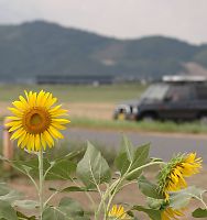 今日は雲が多く天気が微妙ではあったが、一日中家にいてもつまらないので、ミキ隊員ことワタクシ、よっすぃー隊員、カズ隊員の3人でドライブに出かけることにした。 タイチョーは仕事だ。 8月20日のエアショーから帰って、 『まだ3輪しか咲いてなくてな、8月下旬になるって』 と、タイチョーが言っていたのを思い出し、本当に咲いているか確認しに行く事に。 大空と大地のひまわりカーニバル …というくらいだから、ひまわりもそれなりに咲いているに違いない。 |