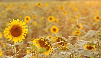 干拓地に入ると、「ひまわり畑 →」 という看板が目に入る。 |