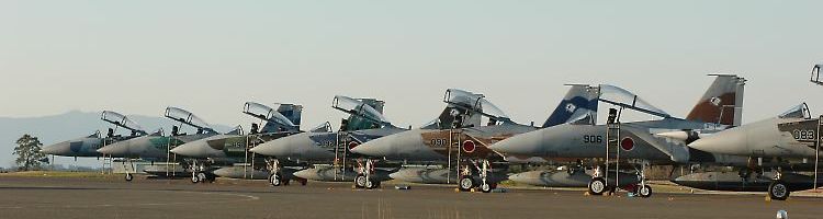 だらだら歩いて、エプロンに到着したのは8時過ぎ、管制塔の下まで辿り着いたのは8時半だった。 遠い、遠いよ。 広すぎるよ、新田原。 さすが、戦闘機がいっぱい配属されてるだけあるな〜。 管制塔の下で、配られていたパンフレットを貰い、時間を確認。 オープニングフライトまでまだ30分あるのか。 しかし会場はもう人がいっぱい。 美保や防府北や岩国は何だったのだろう…。 その時、後ろでオープニングフライトに向かうであろう数機の戦闘機が飛んでいった。 航過飛行以外にも戦闘機が見られるなんて…! フツーに戦闘機が飛び回ってるなんて…! 何だったの、美保や防府北や岩国…! |