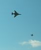 救難展示に入ったので、「お腹すいた〜」を連呼していたよっすぃー隊員を連れ、建物の裏へ。 タイチョーが買ってきた「鶏南蛮弁当」を食す。 結構ボリュームがあって満腹。 カズ隊員は興奮してか食べようとしない。 建物の間から見える救難ヘリUH−60に「おおおお」と声を上げているだけだった。 で、今のうちによっすぃー隊員のトイレ済ませておこう、と思ってタイチョーとトイレに向かわせたら始まってしまった。 F−4とF−15の機動飛行が…! 膝の上には南蛮弁当、そしてカズ隊員。 今すぐ走ってエプロンに向かいたいのに…!ああああああ。 |
