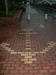 海軍技手養成所跡地が、アレイからすこじまの駐車場になっているという情報を得、タイチョーが車を停めにコンビニ横の坂を登っていった。 その間、公園内を探険してみることに。 アレイからすこじま公園は、国内で唯一潜水艦を間近で見られる所。 「アレイ」とは、alley=小道の意で、「からすこじま」は、その昔埋め立てられた烏小島という名の島から取ったらしい。 公園内はレンガが敷かれ、錨や操舵輪の模様になっている。 そして普通に大砲がベンチ代わりに置いてあったり、船を繋ぐ柱があったり、戦時中に魚雷を積み込むのに使われたクレーンがモニュメントとして残っていたり…旧軍事代のモノがたくさん残っている。 |