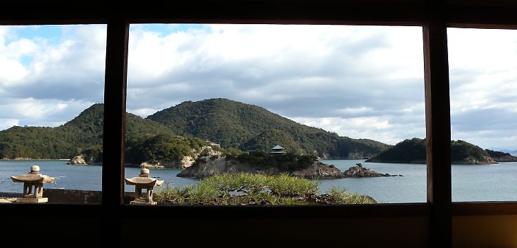| 国史跡 朝鮮通信使遺跡 鞆福禅寺境内 このちょっと写ってるのが。 石垣の上に立っている。 元々作られたのは平安時代で、本堂に隣接する客殿(対潮楼)は江戸時代に作られたのだそう。 江戸時代の朝鮮通信使の迎賓館として利用されたのが対潮楼で、ここからの眺めは(朝鮮より東では)最も美しいと言われたそうだ。(リップだろ!…ていうか、やっぱり朝鮮一番なのねw) ここからの眺めは、画像のとおりである。 |
