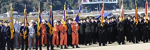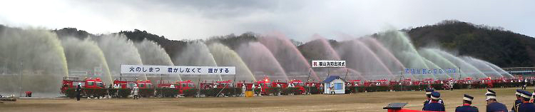 それから間もなく、家屋で建物火災が発生。 ポンプ車などが駆けつけて、手際よく消火した。 おうちは…前回ほど激しく燃えてなかったが、コレも訓練の成果だろうか??? その後も、化学工場で爆発が起き、化学消防車が駆けつけた。 コレは、水で消火できない場合に、泡消火剤で消火するのだ。 真っ黒な煙に向かって、あわあわ発射! しばらくして鎮火した。 |