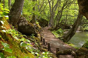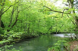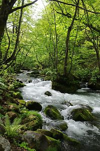 渓流沿いには遊歩道が整備され(一部車道を歩くが)、流れと同じ目線で歩くことが出来る。 |