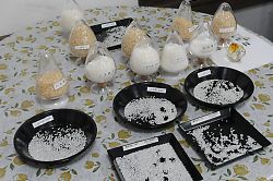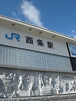 今回は、駅の駐車場にへなちょこ号を停め、歩いて探険する事に。 駅は白壁の蔵をイメージした建物になっていて、中の店先に並ぶ土産物も、その蔵で作られる「ある物」にちなんだものが並んでいた。 駅の名前はJR西条駅。 「ある物」とは? |