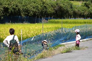 それからまた少し歩いて、線路の下をくぐって対岸へわたり、バッタを取ったり、ススキを取ったり、花を摘んだり、ヨウシュヤマゴボウの実をつぶして遊んだりして時間をつぶしていた我々が、もう今日は帰ろうかと諦めモードに入ったとき、それは突如やってきた。