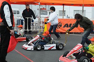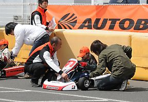 いよいよエンジンを始動、アクセルを踏んで発進した後、ライン前でブレーキを踏んで停止!の練習…のはずが。 |