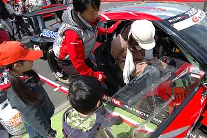 他にも、子供と女性限定、GTカーに乗って(座って)みようコーナーがあり、3人で並んで乗った。 「ここにまず座って、足を入れて…」 説明を受けつつワタシも座ってみる。 「え?!ここに?!もももももう一回お願いします」 優しく笑いながらここに足を…大丈夫ですか?と教えてくれる優しいスタッフ。 わざとじゃないですよ、わざとじゃ。 「すごい〜!狭いんですね〜!」 なんて言いながら、実はすっぽりはまったお尻を必死で引き抜くための時間稼ぎをしていた…。 も、本っっっ当に狭い!!! |