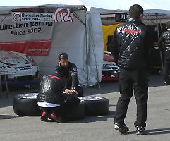 Cパドックの裏にも潜入。 合間に行われるPORSCHEのレーシングカーがずらりと並ぶ。 慌しいクルーの タイヤを運ぶのもタイヤの上にタイヤを乗っけてコロコロっと不思議な運び方をしていて思わず釘付けになる。 |