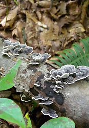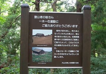 今来た道を半分くらい下ったところで、木製のテーブルとベンチを発見。