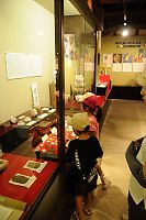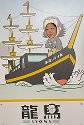 歩いて歩いて…元の浜に戻ってきたへなちょこ海援隊。 国民宿舎でちょっと休憩。 あまりの暑さに水筒の水を飲みきってしまった我々はラムネを購入して、一息ついていた。 その同じ建物内で、(もう終了してしまったのだが)、「平成いろは丸で行く仙酔島・龍馬といろは丸展」が開催されていた。 ※開催期間 2010年1月9日(土)〜11月30日(火) (龍馬と仙酔島は何の縁もゆかりもないよね、というのはこの際忘れて欲しい…。) いろは丸事件を解説するパネルの展示、いろは丸事件をアニメで解説してあった。 同時開催 で大河ドラマ「龍馬伝」展もあり、撮影衣装や小物の展示、撮影風景のパネル展示などがあり、龍馬ファンも福山雅治ファンもちょっと嬉しい内容だった(笑) 詳細は、福山市観光課 「大河ドラマ『龍馬伝」 を福山で応援する会」 略して「福援隊」のHPへ。 http://www.fukuyama-ryoma.com/top.php ブログパーツや平成いろは丸のペーパークラフトがあるのでゼヒ。 |