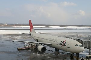 そして迎えた 2010年12月24日。 クリスマスイブである。 雲が切れ飛行機の窓から下を覗くと、一面の銀世界に思わず「わぁ」と声が出る。 見渡す限り真っ白なのだ。 もちろん空港も真っ白、これってちゃんと飛行機止まるの?なんて心配してしまう。 無事着陸(当然だ)、空港ターミナルビル内はやはり暖房がしっかり効いていて暑いくらいだ。 |