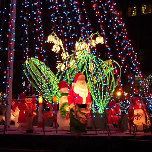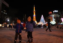 小樽はまさに大雪だった。 雪が、絵に書いたように丸く固まって落ちてくるように見える。 どっさり降ってくる雪に、よっすぃー隊員もカズ隊員も大喜び。 透明なビニール傘から上ばかり見ていて、危ないことこの上ない。 タイチョーは足元にどっさり積もった雪でキャリーバッグが転がせず、抱えて歩く羽目に。 わぁわぁきゃあきゃあ言いながら、一行はやっとホテルへ。 傘を差していても雪だるまのようになってしまい、その雪を払うのもまた楽しいらしく、ホテルの前できゃっきゃと雪を落としている。 そしてその頭にまた雪が…ってコレじゃエンドレスだよ!(怒) ばばばっと雪を払い、ホテルの中にとりあえず二人を押し込む。 チェックインを済ませると、今日はクリスマスなので、小さなツリーをプレゼントしてくれた。 「手袋は?カイロ貼った?」 寒さ対策をしっかりして、我々は小樽運河へ向かった。 |