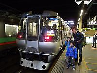 2010年12月25日。 午前8時発のL特急スーパーカムイにのるべく、慌てて札幌駅までやってきた我々へなちょこ隊。 あと数分で発車だけど何故か撮っちゃう行先表示と列車の写真(笑) ちなみにコレは、785系だ。 天気予報では、今日はこの冬一番の寒さでしょう、なんて言っていて、広島県人の我々はすでに足の裏にカイロも貼って準備万端だ。 (しかし車内が暑いことは忘れていた) |