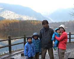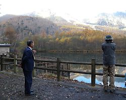 大正池で写真を撮り、再びタクシーへ。 |