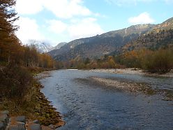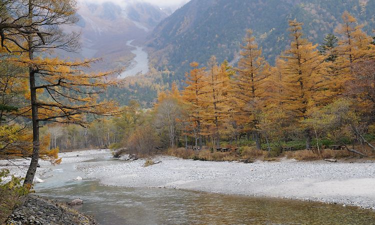 再び梓川に沿って歩き出す。 |