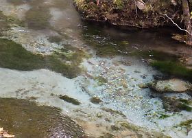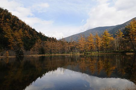 大小二つの池からなるこの明神池は、穂高神社(奥宮)の中にある。 |