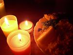夕食を済ませ、キッチンのキャンドルを消すと、今度は居間に灯りをともす。 |