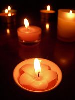 キャンドルナイトというからには、まずろうそくを集めねば。 さすがに仏壇のろうそくでは、キャンドルナイトというより、百物語になってしまうので、よっすぃー隊員と色々選んで購入。 様々な色で様々なタイプのものを。 今夜は、20時までにササッと作れて、暗闇でも食べやすいものにしようと、ぶっ掛けうどんに決定。よっすぃー隊員もカズ隊員も待ちきれない様子でキャンドルの準備。 そして20時20分、消灯。 間に合いませんでした、20時に(笑) いいんだ、無理はいけないってオフィシャルサイトに…(勝手な解釈) |